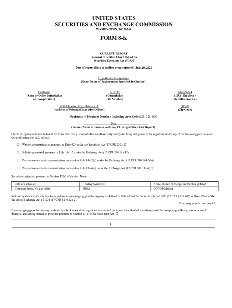 July 20 Giga-tronics refers to a specific filing or report that companies are required to submit, often related to financial or regulatory compliance.