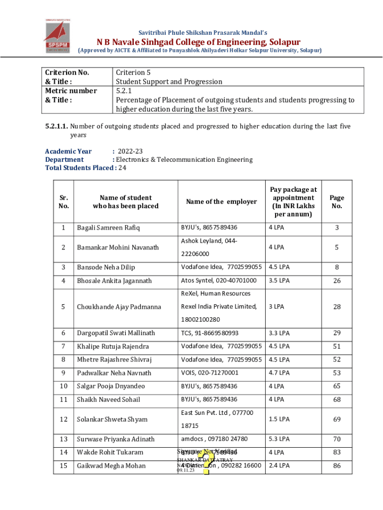 Savitribai Phule Shikshan Prasarak MandalsN B Navale Sinhgad College of Engineering, Solapur(Approved by AICTE & Affiliated to Punyashlok Ahilyadevi Holkar Solapur University, Solapur)Criterion No.