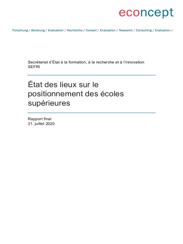 Secrtariat dtat la formation, la recherche et linnovation SEFRItat des lieux sur le positionnement des coles suprieures Rapport final 31. juillet 2020labor par econcept AG, Gerechtigkeitsgasse 20,