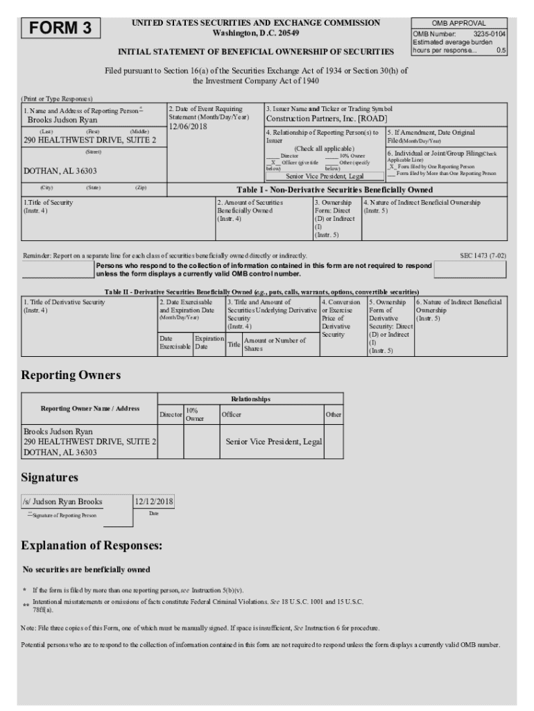 UNITED STATES SECURITIES AND EXCHANGE COMMISSION Washington, D.C. 20549FORM 3OMB APPROVALINITIAL STATEMENT OF BENEFICIAL OWNERSHIP OF SECURITIESOMB Number: 32350104 Estimated average burden hours