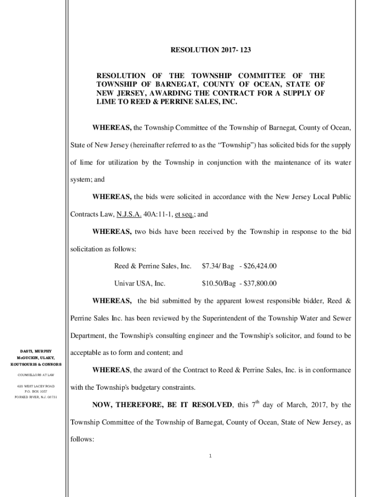 RESOLUTION 2017 123RESOLUTION OF THE TOWNSHIP COMMITTEE OF THE