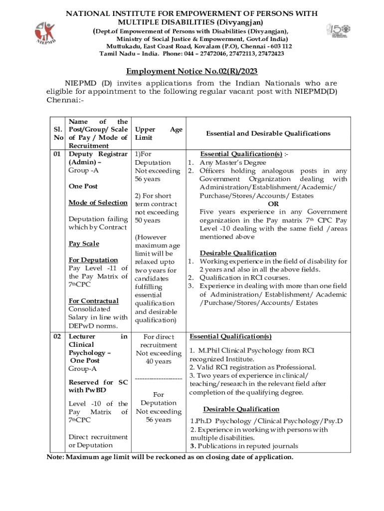 NATIONAL INSTITUTE FOR EMPOWERMENT OF PERSONS WITH MULTIPLE DISABILITIES (Divyangjan) (Dept.of Empowerment of Persons with Disabilities (Divyangjan), Ministry of Social Justice & Empowerment, Govt.of