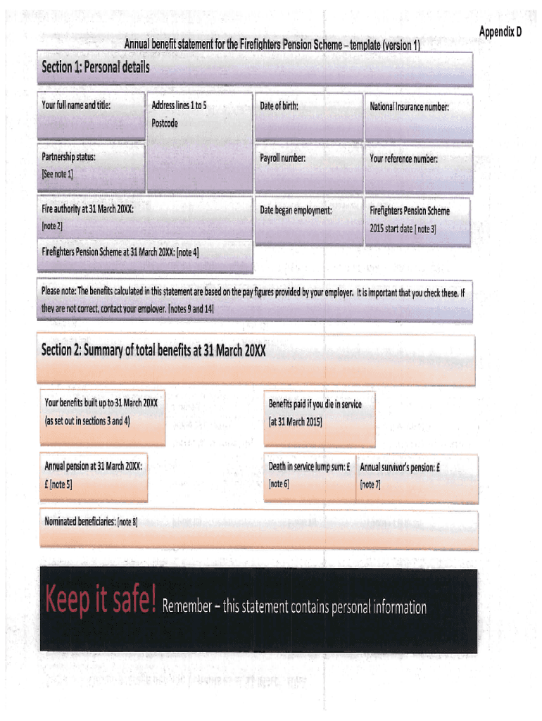 Annual benefit statement for the Firefighters Pension Scheme template (version 1)
