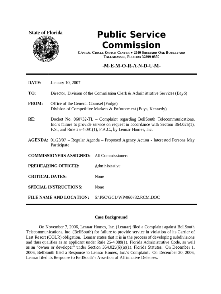 Instructions for the Florida Public Service Commission SPECIAL REPORT ... form