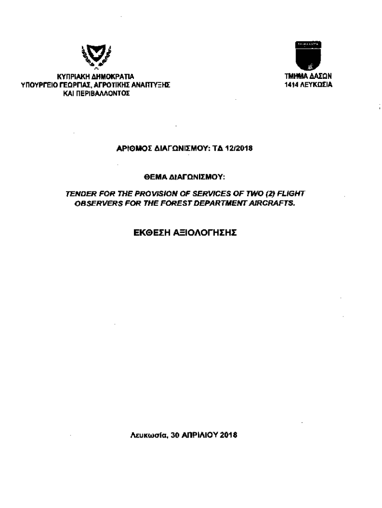 OBSERVERS FOR FOREST AIRCRAFTS. , 30 20182