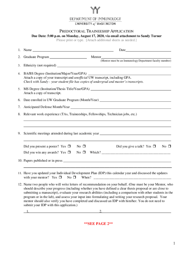Carefully read all instructions provided in the application form and ensure you understand the eligibility criteria and requirements for the immunology traineeship.