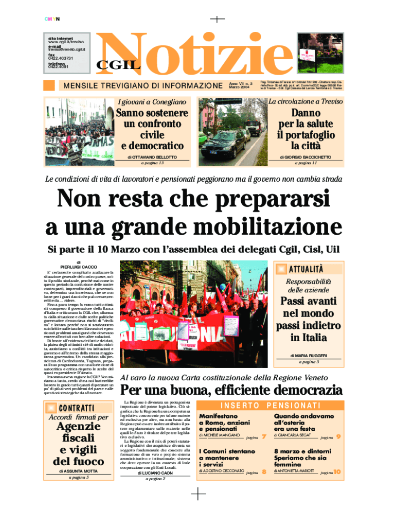 CMYNsito internet www.cgil.it/treviso email treviso@veneto.cgil.it fax 0422.403731 telefono 0422.4091Notizie CGILMENSILE TREVIGIANO DI INFORMAZIONEAnno VII n. 3 Marzo 2004Reg. Tribunale di Treviso