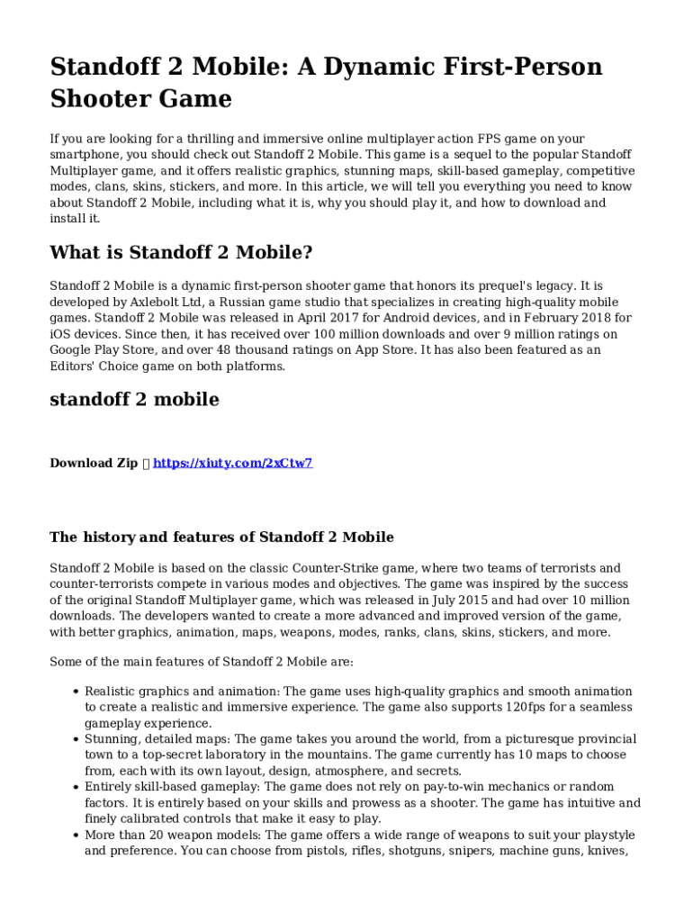 Standoff 2 Mobile: A Dynamic FirstPerson Shooter Game If you are looking for a thrilling and immersive online multiplayer action FPS game on your smartphone, you should check out Standoff 2 Mobile.