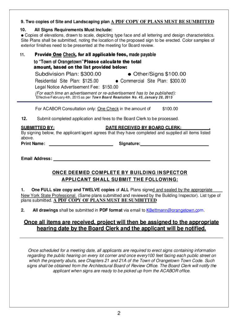 Architectural & Community Appearance Board of Review (ACABOR) Town of Orangetown Building Department 20 Greenbush Road, Orangeburg, New York 10962 (845) 3598410, ex 4331, www.orangetown.comAPPLICATION