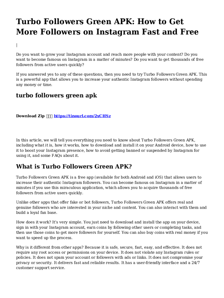 Filling out the Turbo Followers Mod APK generally involves installing the app, creating an account, and following the instructions provided for gaining followers, rather than filling out a traditional form.