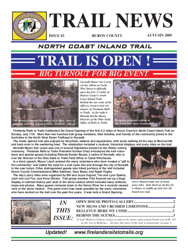 TRAIL NEWS ISSUE #3HURON COUNTYAUTUMN 2005NORTH COAST INLAND TRAILTRAIL IS OPEN ! BIG TURNOUT FOR BIG EVENTThe moment everyone has waited for is here. Years of planning and a lot of hard work by volunteers