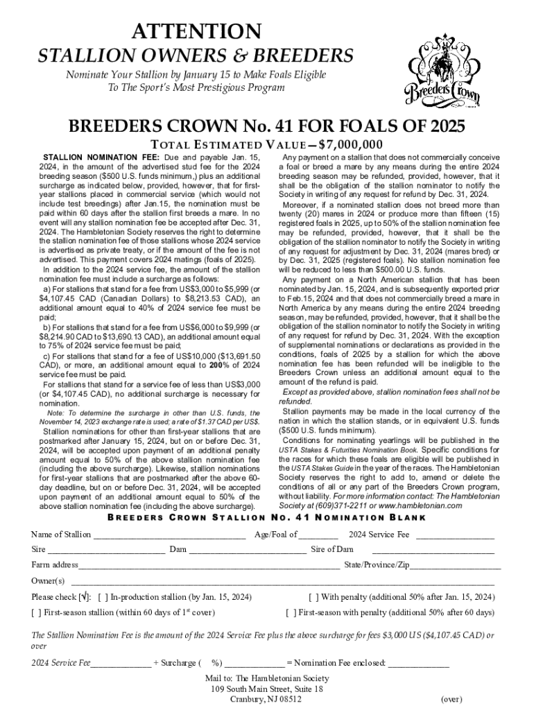 Fill out your breeders crown 38 stallion online with pdfFiller!