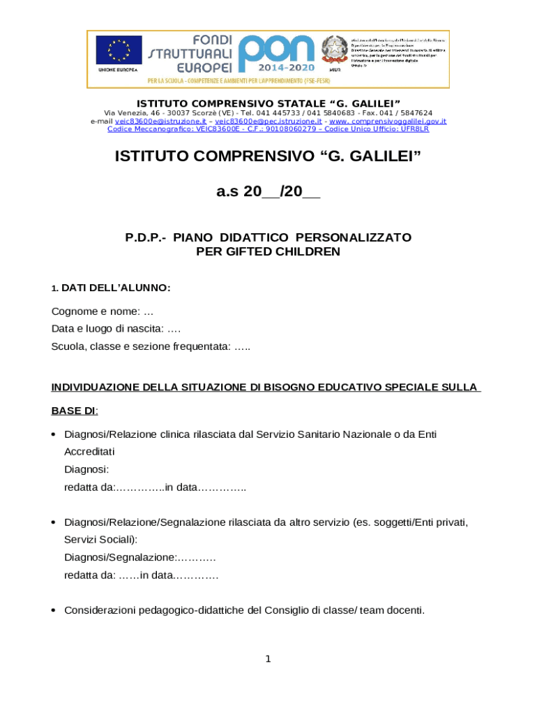 Template Il Piano Didattico Personalizzato per gifted children instructions