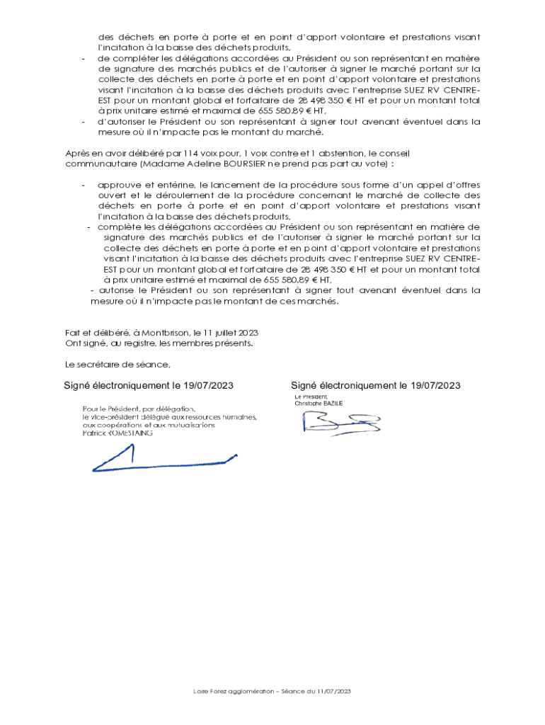 DEPARTEMENT DE LA LOIRELOIRE FOREZ AGGLOMERATION ___ARRONDISSEMENT DE MONTBRISONEXTRAIT DU REGISTRE DES Dlibrations du Conseil Communautaire ___N 20230707Sance du mardi 11 juillet 2023 OBJET : AUTORISATION