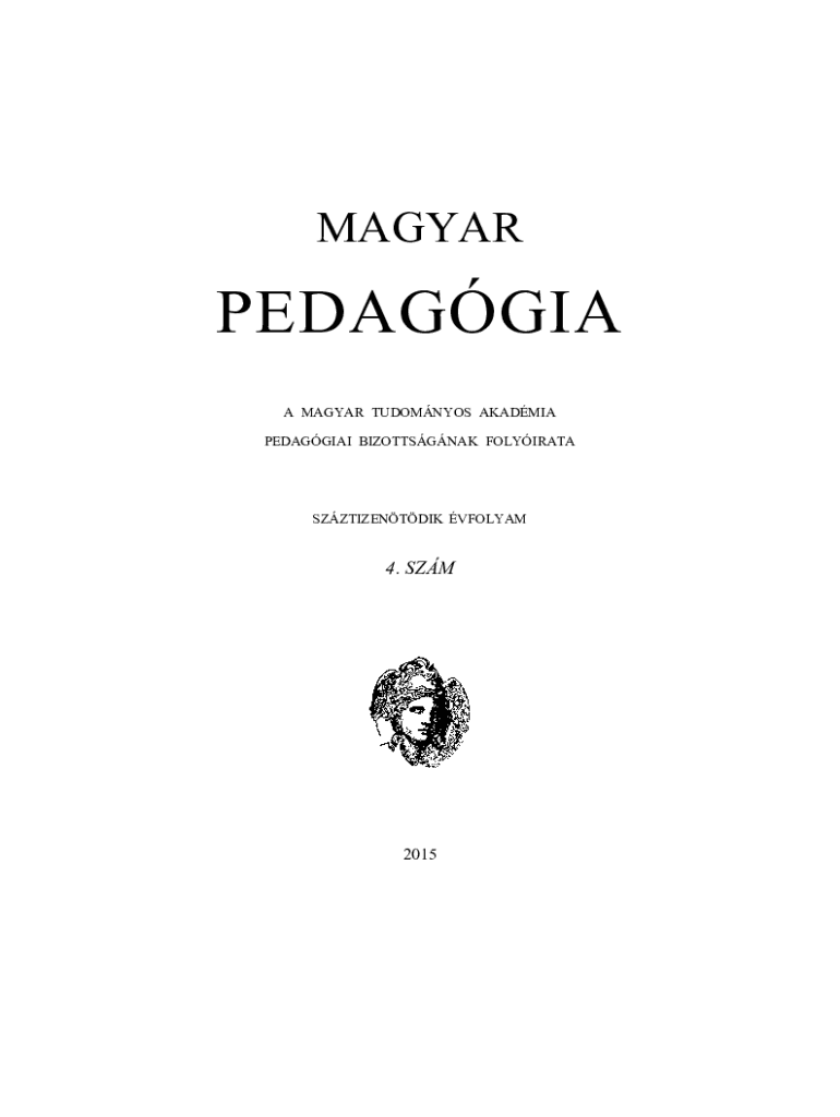 MAGYARPEDAGGIA A MAGYAR TUDOMNYOS AKADMIA PEDAGGIAI BIZOTTSGNAK FOLYIRATASZZTIZENTDIK VFOLYAM4. SZM2015MAGYAR PEDAGGIA A MAGYAR TUDOMNYOS AKADMIA PEDAGGIAI BIZOTTSGNAK FOLYIRATA Alapts ve: 1892 A