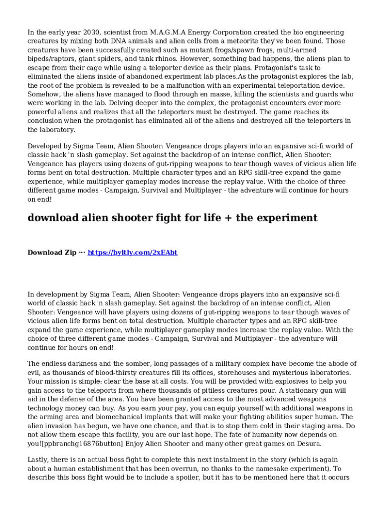 To fill out download alien shooter fight, users typically need to follow the registration or download instructions provided on the platform where the game is hosted, ensuring all required details are correctly entered.