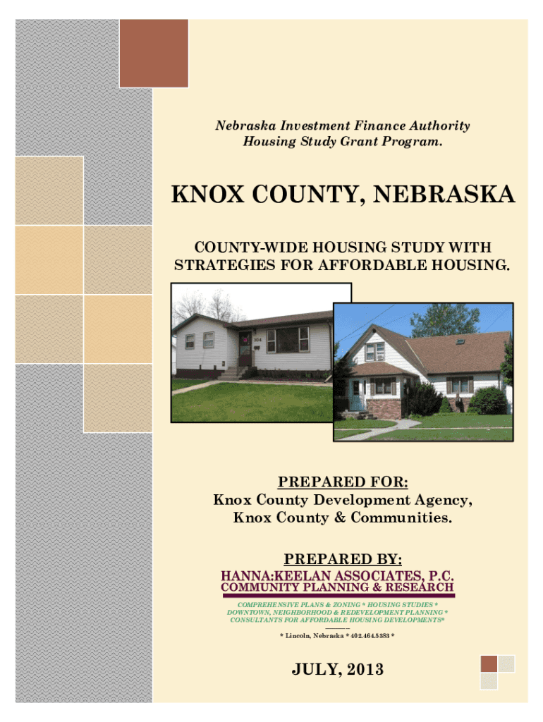 Nebraska Investment Finance Authority Housing Study Grant Program.KNOX COUNTY, NEBRASKA COUNTYWIDE HOUSING STUDY WITH STRATEGIES FOR AFFORDABLE HOUSING.PREPARED FOR: Knox County Development Agency,