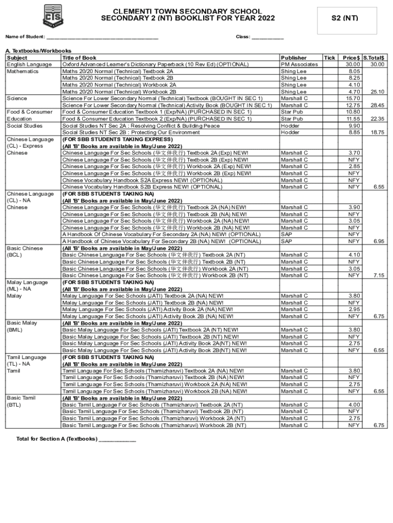 SECONDARY 2 (NT) BOOKLET FOR YEAR 2022