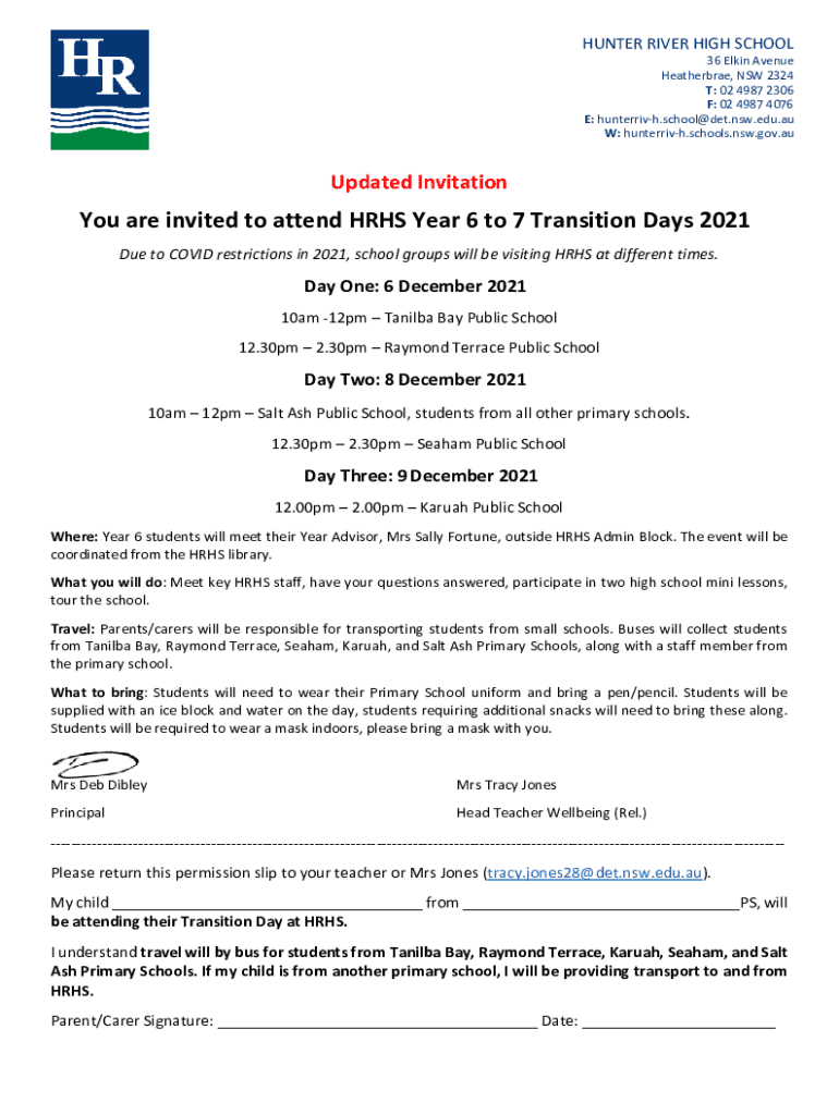 Get the free You are invited to attend HRHS Year 6 to 7 Transition Days ...