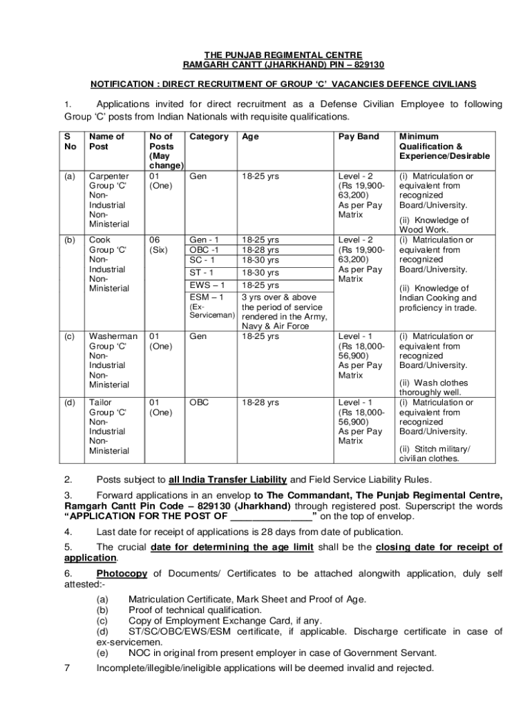 NOTIFICATION : DIRECT RECRUITMENT OF GROUP C VACANCIES Defense CIVILIANSApplications invited for direct recruitment as a Defense Civilian
