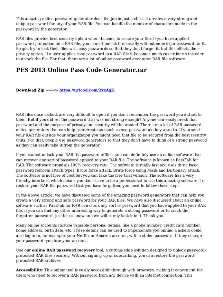 This amazing online password generator does the job in just a click. It creates a very strong and unique password for any of your RAR file. You can handle the number of characters made in the password