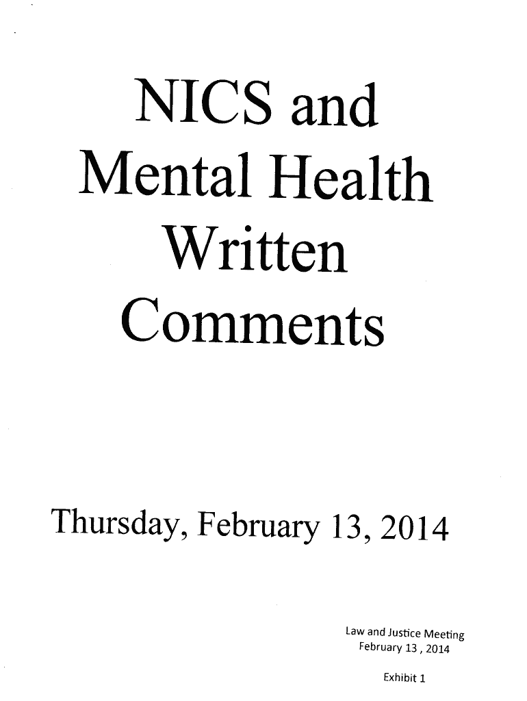 NICE and MentalHealth Written Comments Thurs day, February 13, 20I 4 Law and Justice Meeting February 13, 201,4 Exhibit 1 Montana Legislature Law and Justice Interim Committee National Instant Criminal