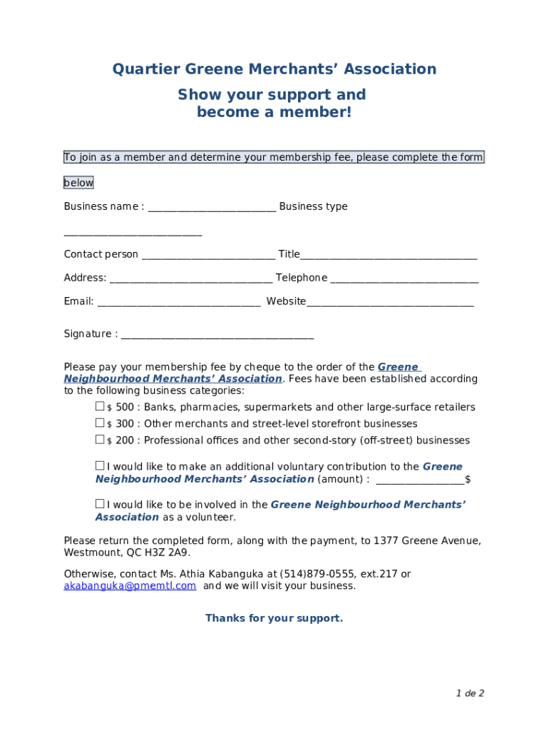 Instructions for the Quartier Greene Merchants' Association Show your support and ... form