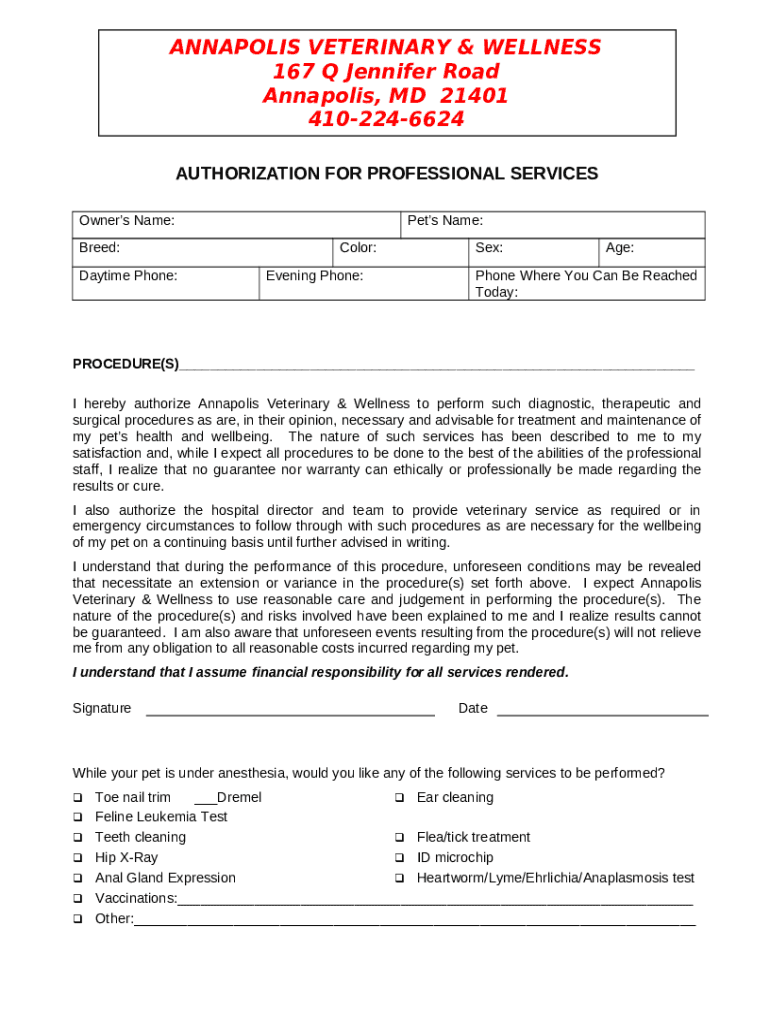 Instructions for the New Minas, NS Veterinarian Animal ClinicAnnapolis Animal ... form
