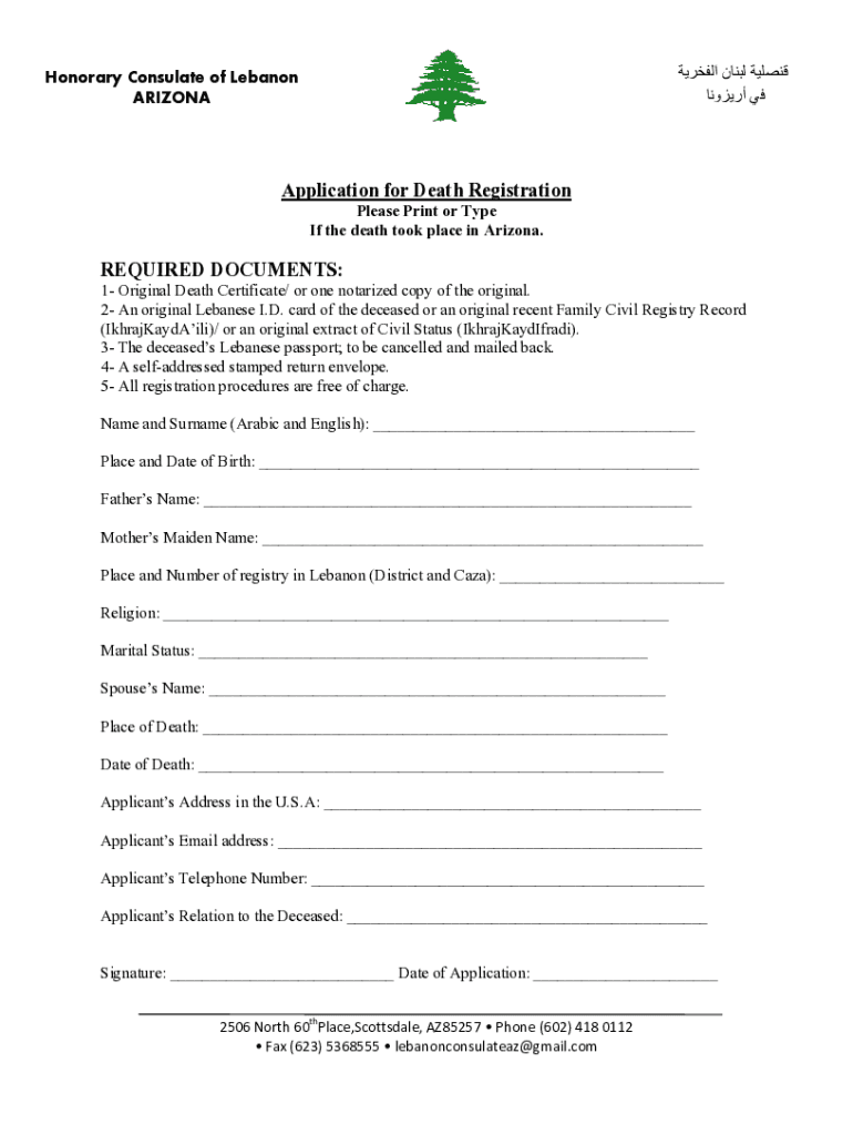 ARIZONAApplication for Death Registration