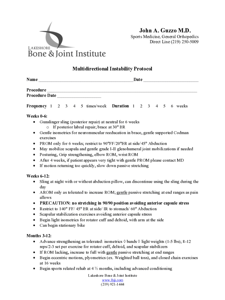 Direct Line (219) 2505009Multidirectional Instability Protocol