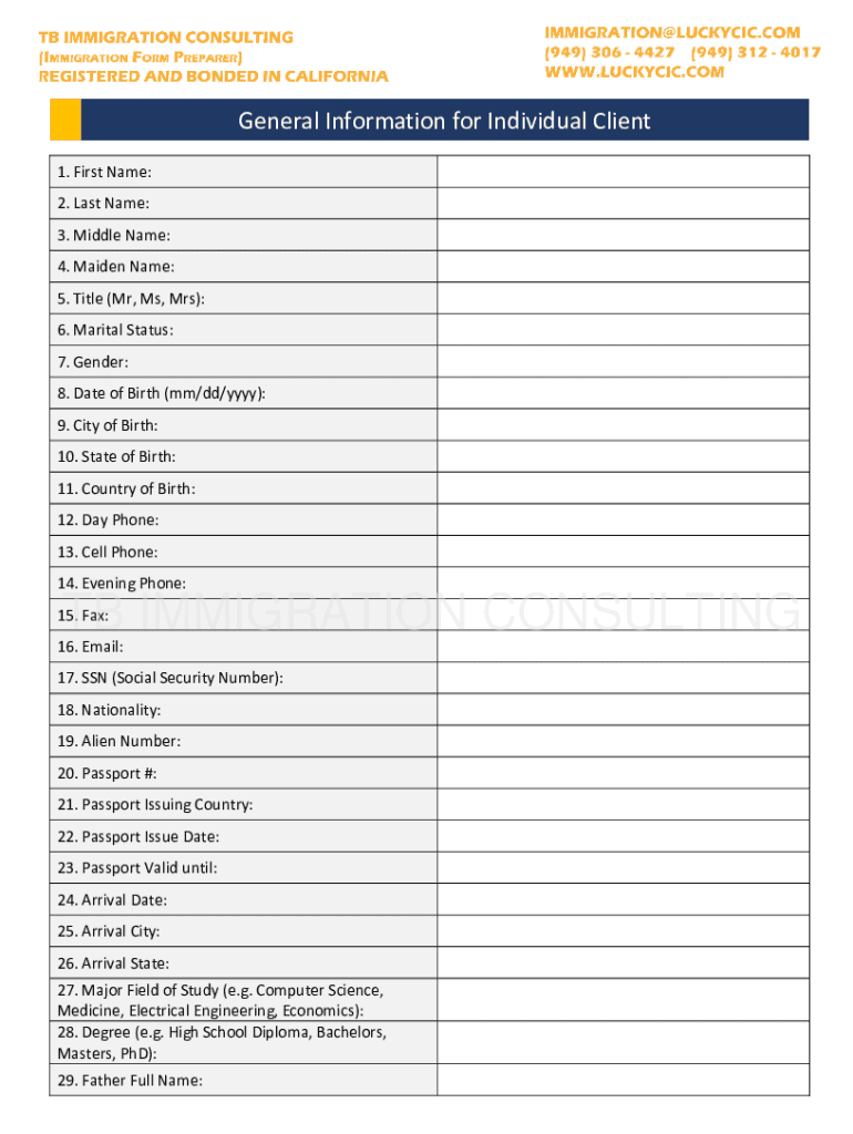 Afridi Immigration and Legal Services www.ImmigrationParalegals.com3001 Red Hill Ave Building 6 suite 210, Costa Mesa, CA 92626 Tel # 7142291322 Fax 7148495497General Information for Individual Client