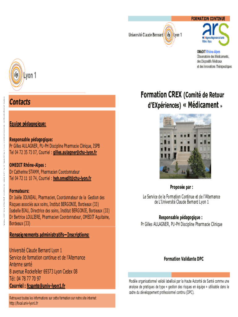 FORMATION CONTINUEOMDIT RhneAlpes Observatoire des Mdicaments, des Dispositifs Mdicaux et des Innovations ThrapeutiquesCrdits photographiques: communication Eric le Roux/UCBL et ML Luca 2010. Conception