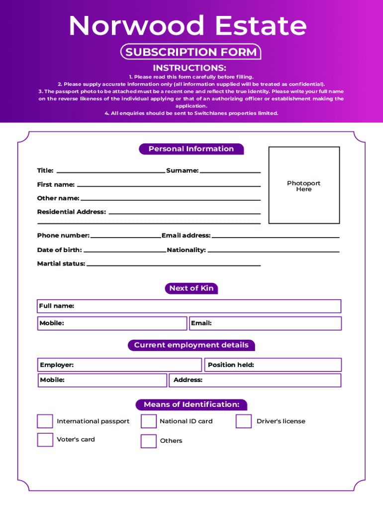 Norwood Estate SUBSCRIPTION FORM INSTRUCTIONS:1. Please read this form carefully before filling. 2. Please supply accurate information only (all information supplied will be treated as confidential).