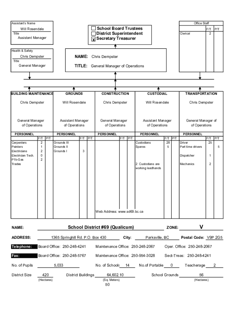Assistant\'s Name TitleOffice StaffSchool Board Trustees District Superintendent X Secretary TreasurerWill RosendaleAssistant ManagerF/T 2ClericalP/THealth & Safety TitleNAME: Chris DempsterChris