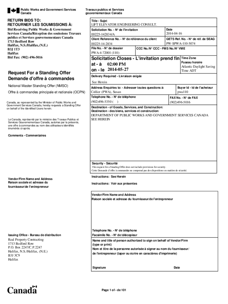 Public Works and Government Services CanadaTravaux publics et Services gouvernementaux Canada 1 1RETURN BIDS TO: RETOURNER LES SOUMISSIONS :Title SujetBid Receiving Public Works & Government Services
