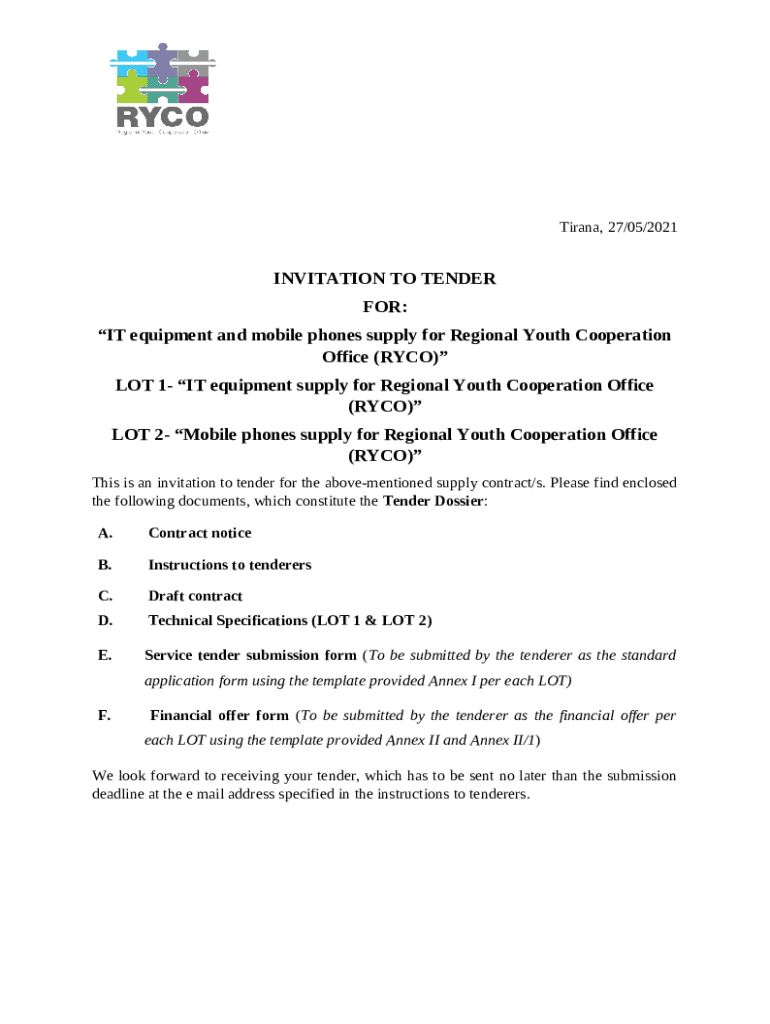The ANNEX I Supply TENDER SUBMISSION is a document you can get completed and signed for certain reasons. Next, it is provided to the exact addressee to provide certain details of any kinds. The completion and signing can be done or with an appropriate tool like PDFfiller. Such tools help to submit any PDF or Word file without printing them out. It also allows you to edit its appearance according to your needs and put a valid e-signature. Once done, the user sends the ANNEX I Supply TENDER SUBMISSION to the respective recipient or several of them by email and even fax. PDFfiller has got a feature and options that make your Word form printable. It provides a number of settings for printing out. No matter, how you deliver a form after filling it out - in hard copy or by email - it will always look neat and organized. To not to create a new writable document from scratch all the time, turn the original form as a template. After that, you will have a customizable sample.