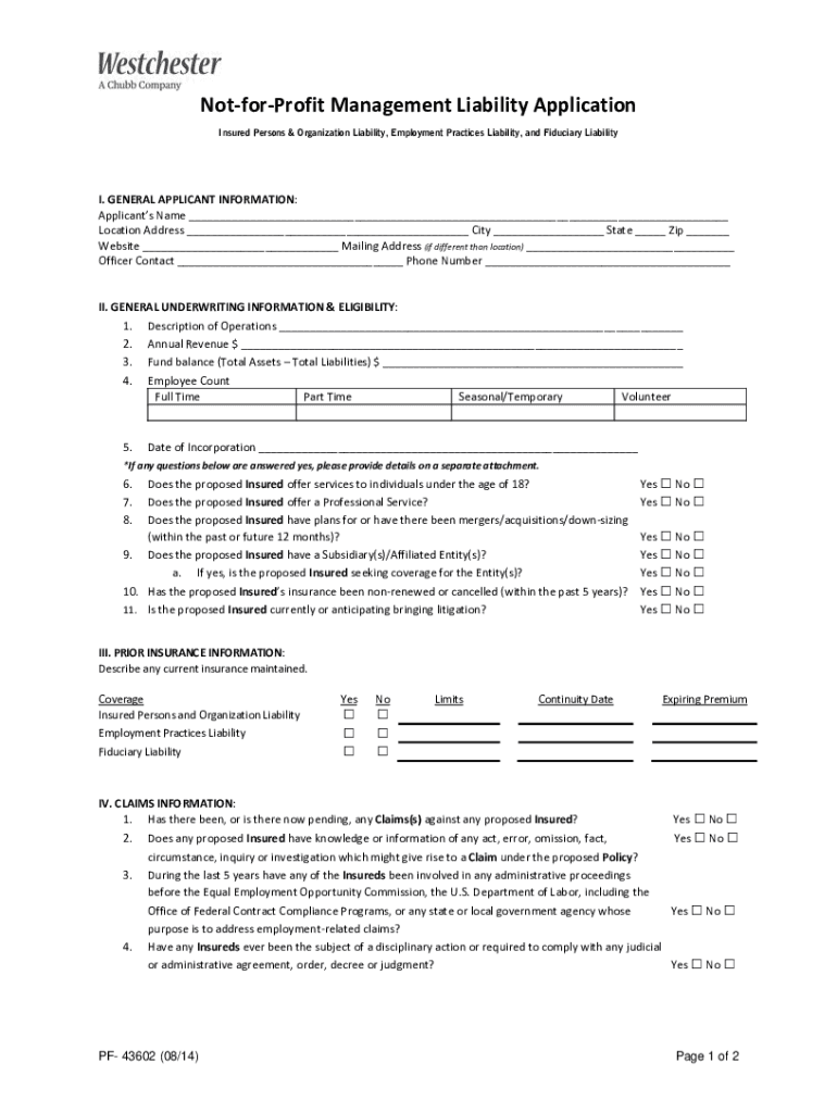 Fill out your non-profit organization management liability online with pdfFiller!