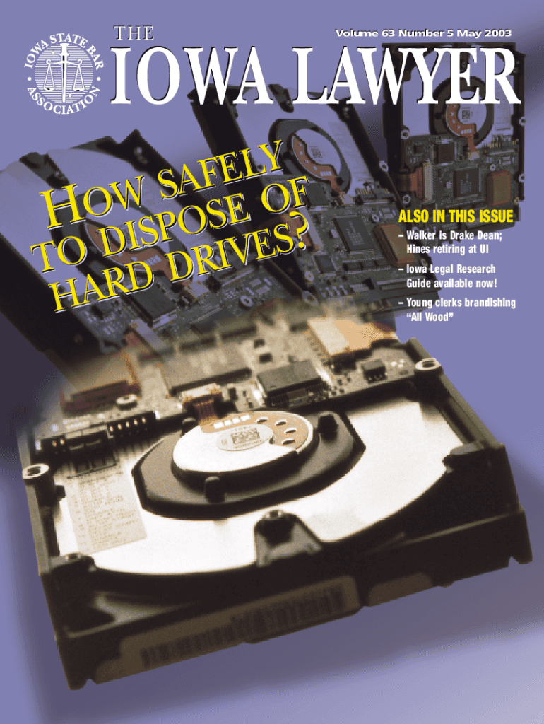 THEVolume 63 Number 5 May 2003IOWA LAWYER Y L E F A S F W O O H ISPOSE S? D E V O I T R D D R HAALSO IN THIS ISSUE Walker is Drake Dean; Hines retiring at UI Iowa Legal Research Guide available now!
