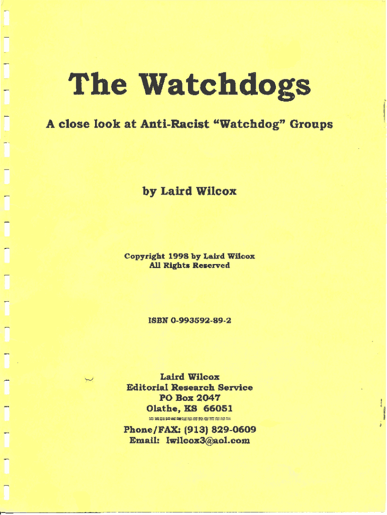 The Watchdogs A close look at AntiRacist 6l[atchdog\' Groupsby Laird lllilcoxCopyrtght 1998 by Lalrd lf,ilcox All Rfghtr RereredrsBrr 0993592892,Lalrd WllcoxEditorlal Research Service PO Box 2(J47\"\':t3:#:::