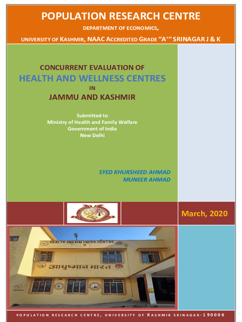 POPULATION RESEARCH CENTRE DEPARTMENT OF ECONOMICS, UNIVERSITY OF KASHMIR, NAAC ACCREDITED GRADE A+ SRINAGAR J & K190006CONCURRENT EVALUATION OFHEALTH AND WELLNESS CENTRES INJAMMU AND KASHMIR Submitted