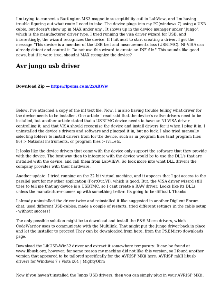 I\'m trying to connect a Bartington MS3 magnetic susceptibility coil to LabView, and I\'m having trouble figuring out what route I need to take. The device plugs into my PC(windows 7) using a USB