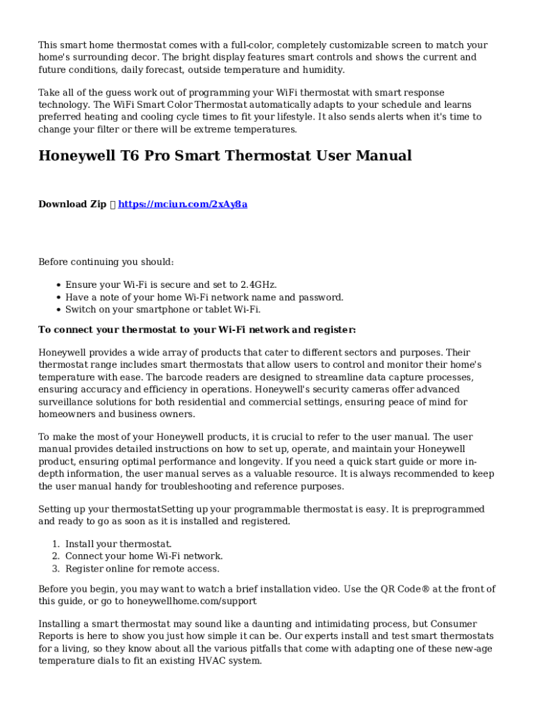 Fill out your honeywell home smart wi-fi online with pdfFiller!