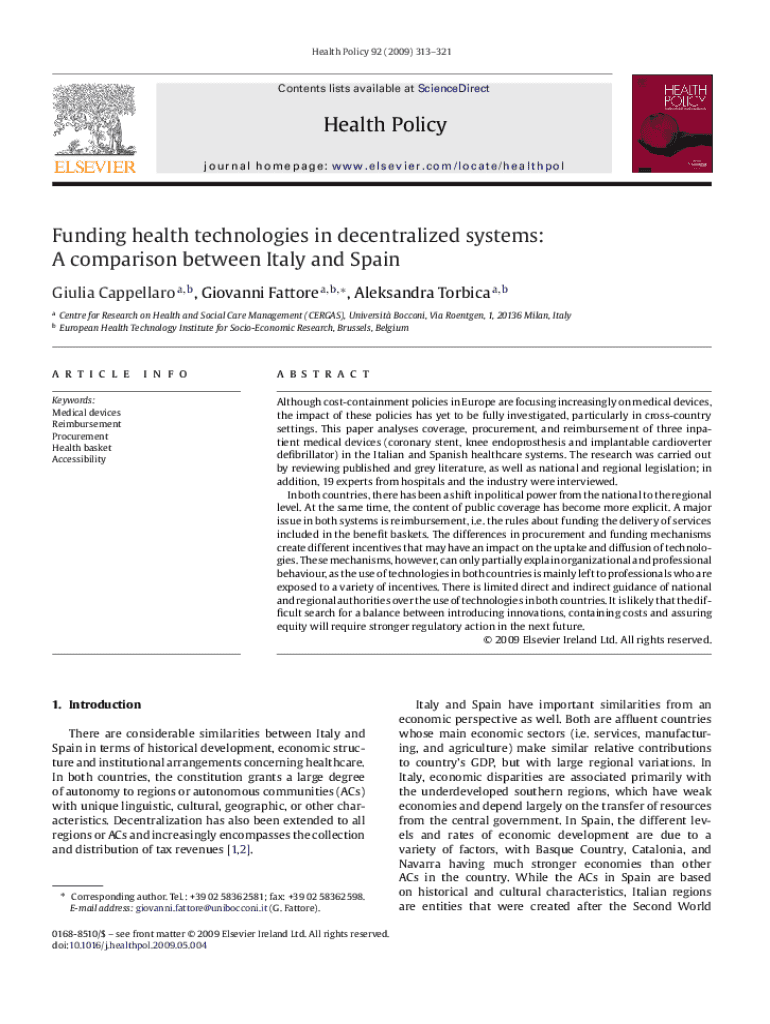 Health Policy 92 (2009) 313321Contents lists available at ScienceDirectHealth Policy journal homepage: www.elsevier.com/locate/healthpolFunding health technologies in decentralized systems: A comparison