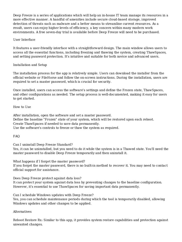 Deep Freeze is a series of applications which will help an inhouse IT team manage its resources in a more effective manner. A handful of amenities include secure cloudbased storage, improved detection
