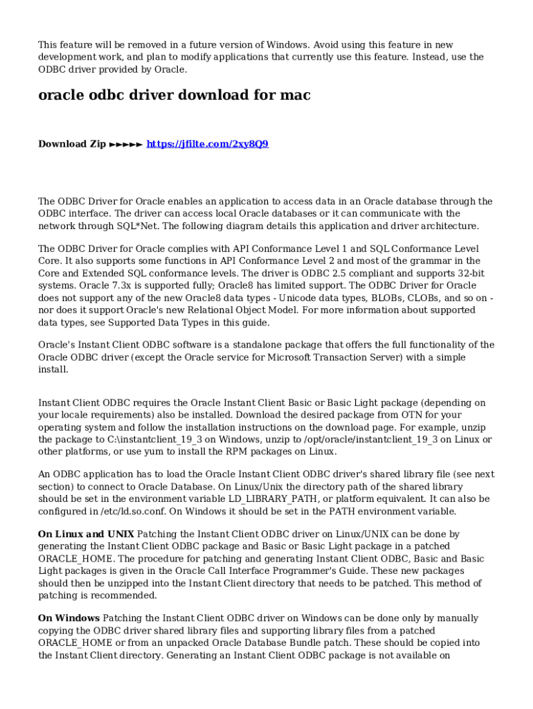 This feature will be removed in a future version of Windows. Avoid using this feature in new development work, and plan to modify applications that currently use this feature. Instead, use the ODBC