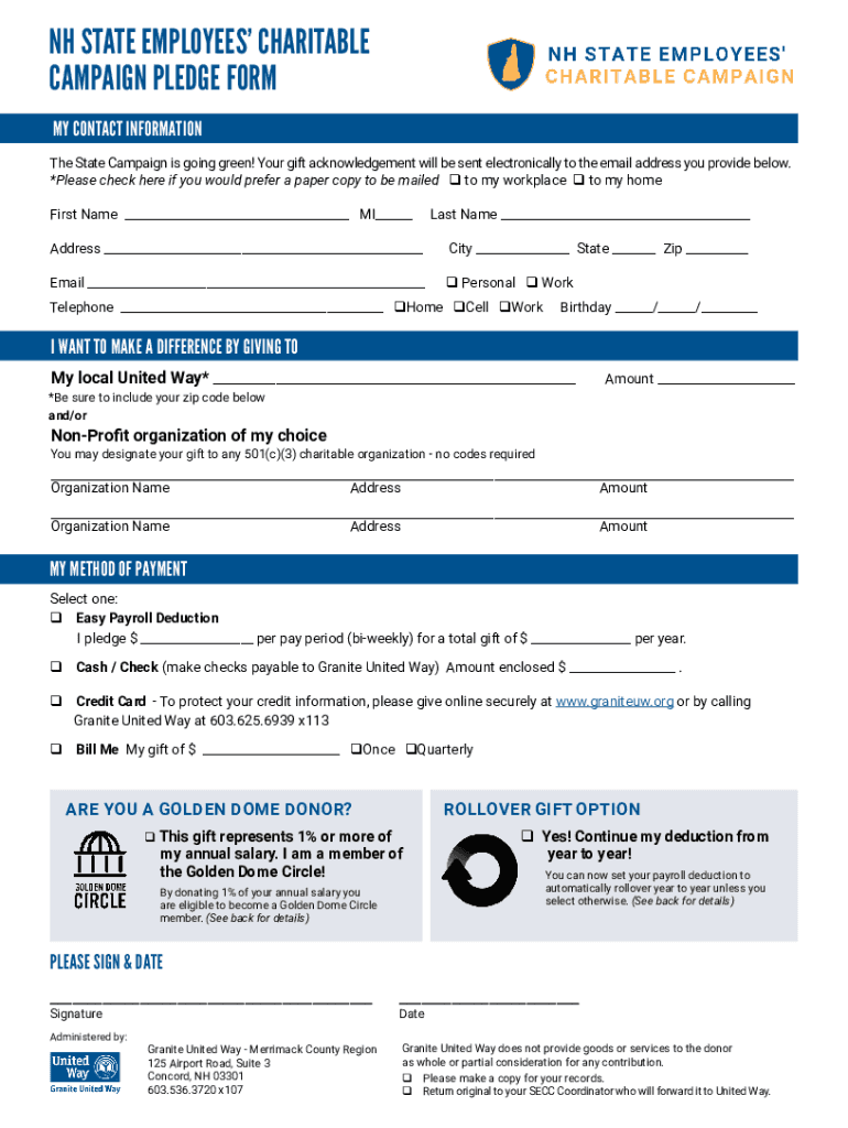 NH STATE EMPLOYEES CHARITABLE CAMPAIGN PLEDGE FORM MY CONTACT INFORMATION The State Campaign is going green! Your gift acknowledgement will be sent electronically to the email address you provide