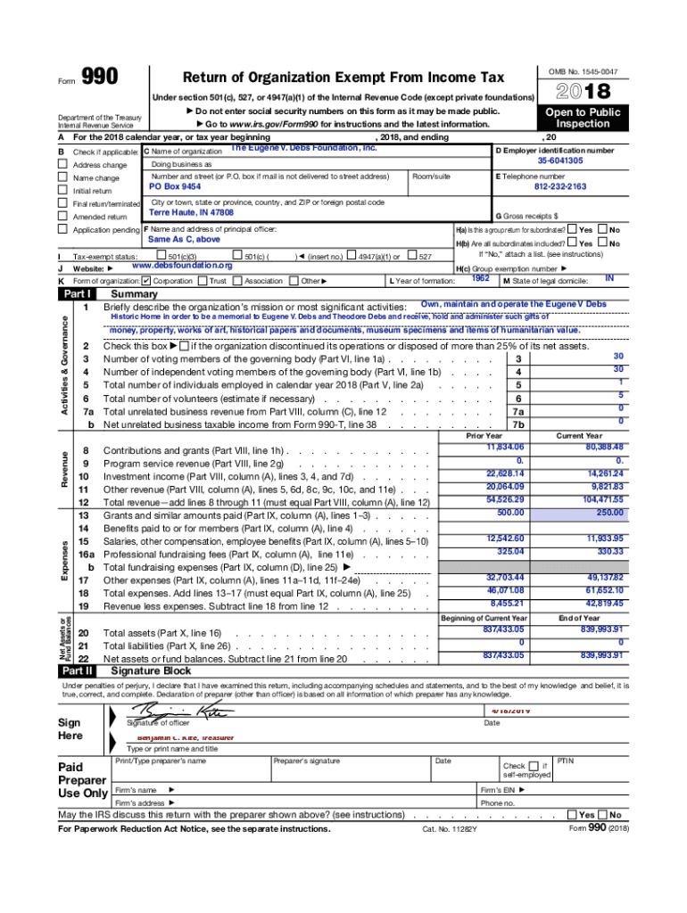 Form990OMB No. 15450047Return of Organization Exempt From Income Tax2018Under section 501(c), 527, or 4947(a)(1) of the Internal Revenue Code (except private foundations) Do not enter social security