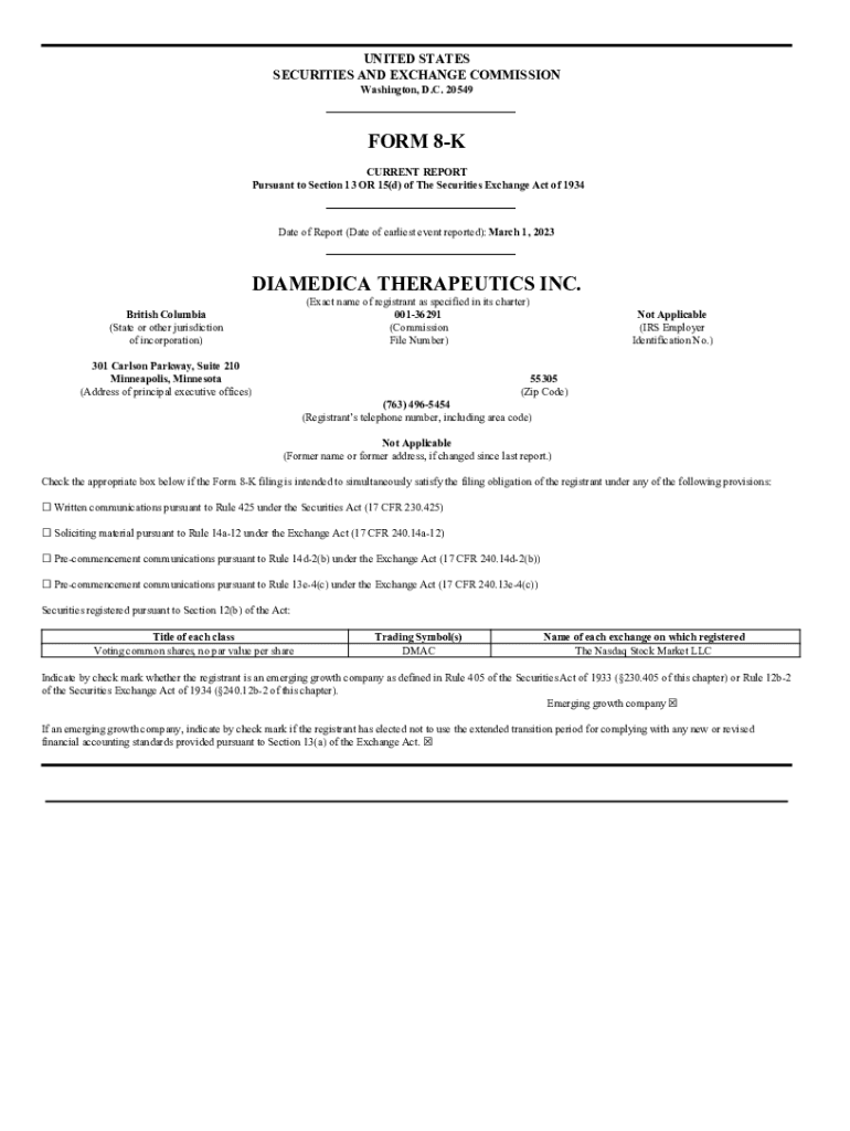 Get the free Burroughs resigned as a director of DiaMedica Therapeutics Inc