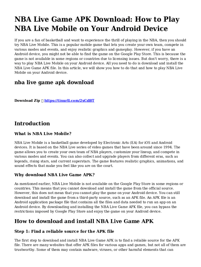 NBA Live Game APK Download: How to Play NBA Live Mobile on Your Android Device If you are a fan of basketball and want to experience the thrill of playing in the NBA, then you should try NBA Live