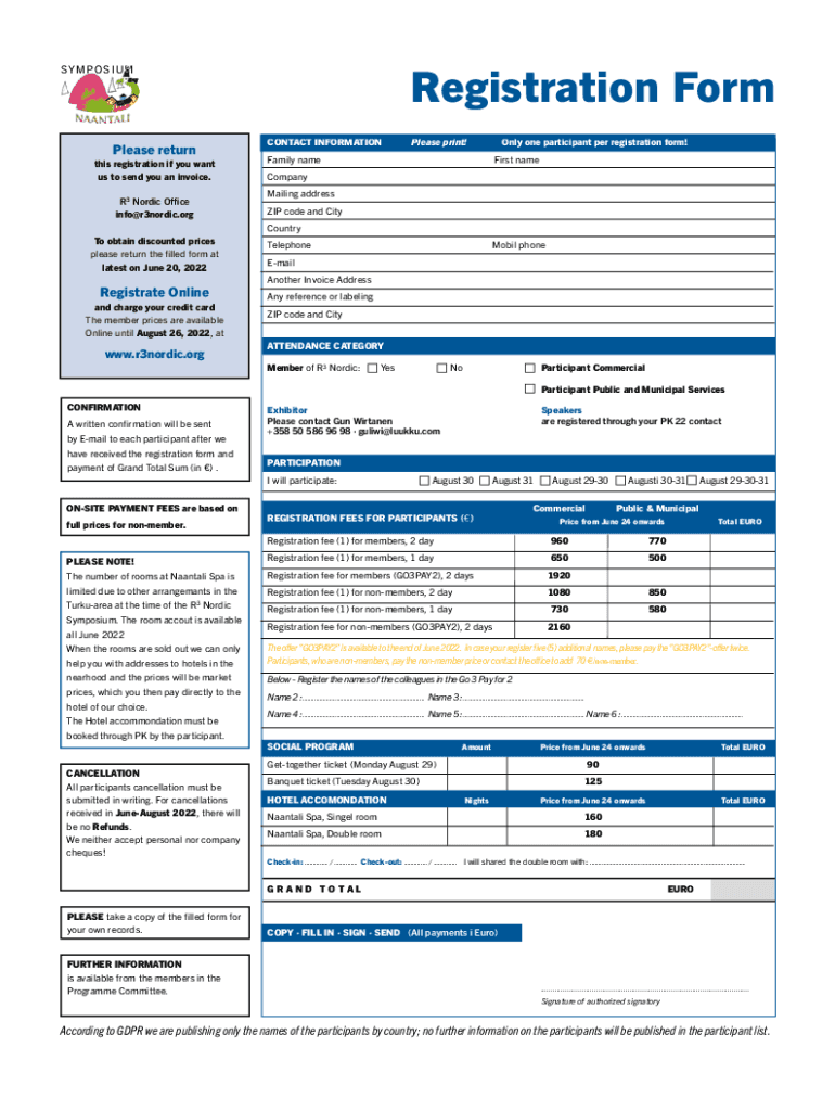 Registration FormSYM PO S I UMPlease return this registration if you want us to send you an invoice. R3 Nordic Office info@r3nordic.orgCONTACT INFORMATIONPlease print!Family nameOnly one participant